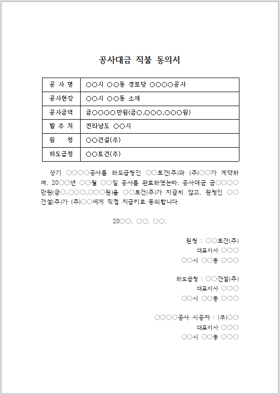 공사대금 직불동의서 양식