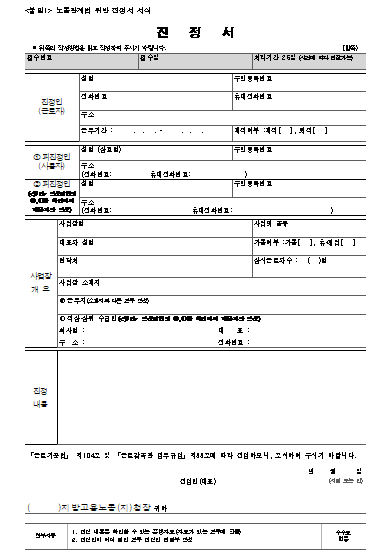 진정서 양식은 특별하게 정해진 것이 없으며, 각 항목에 정확한 내용만 기입되면 크게 문제가 없으므로, 온라인에서 진정서 양식을 검색 후 다운로드하여도 크게 문제가 없다.