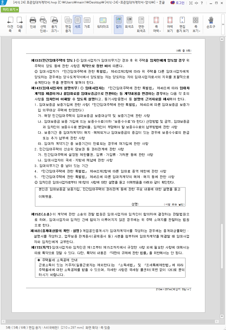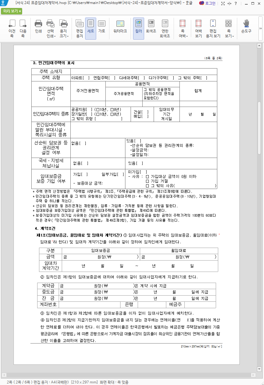 이것은 표준임대차계약서 무료 양식으로 배포되는 자료중에 6페이지 분량으로 구성이 되어있는 표준임대차계약서 hwp 파일입니다. 압축파일 형태로 제공을하며, 압축파일 비번은 1357913579로 구성이 되어있습니다.