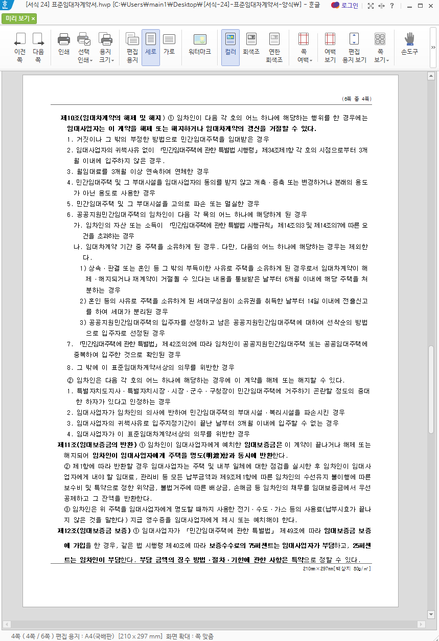 표준임대차계약서 양식 무료 hwp